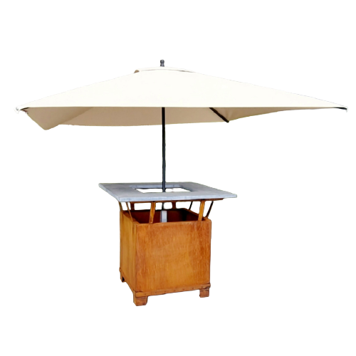 Ce mange debout carré est composé d’une structure en acier corten (2 mm d’épaisseur) et d’un plateau carré en pierre bleue du Hainaut ou pierre beige de Comblanchien (3 cm d’épaisseur). Ce mange debout en acier corten peut accueillir 4 à 6 personnes. Il décorera parfaitement vos espaces extérieurs tout en restant très utile en cas de réception. Le caractère rustique et naturel de la pierre donne un charme supplémentaire aux espaces extérieurs.